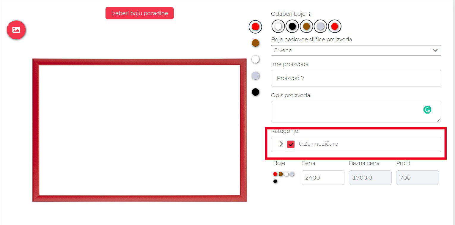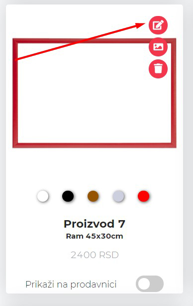 Recimo da želimo da nam Proizvod 7 bude u kategoriji “Za muzičare”, to ćemo uraditi tako što ćemo ući na menjanje proizvoda: