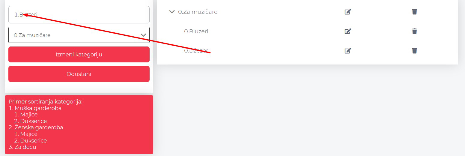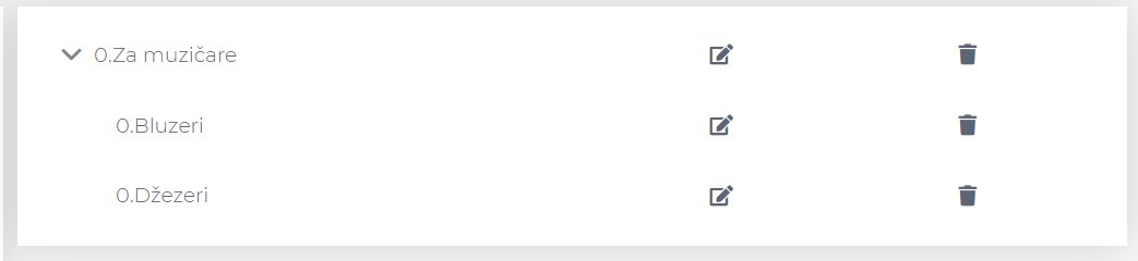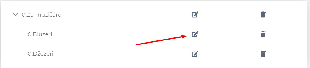 Da nam “Džezeri” budu prvi smo mogli da uredimo još kada smo pravili ovu potkategoriju, tako što bismo u polje “Ime” napisali “0.Džezeri”, a kada smo pravili za “Bluzeri” je trebalo postaviti broj koji je veći, odnosno jedinicu pre imena, tj. “1.Bluzeri”.