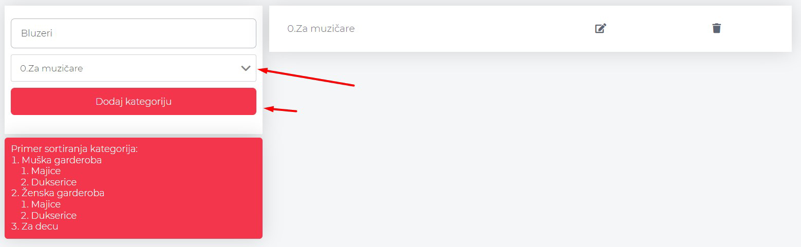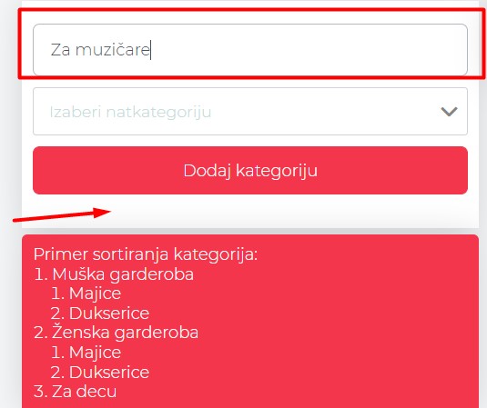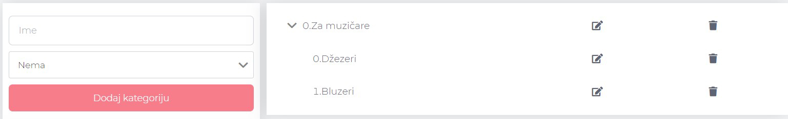 Na ovom ekranu možeš na jednostavan način praviti kategorije proizvoda, kao i njihove potkategorije.